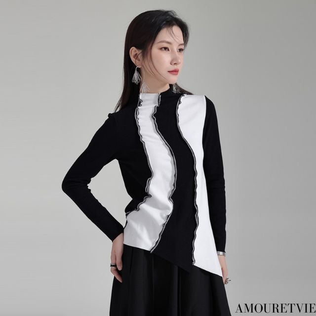 白黒カラーのみを使ったモノトーン調のカラーでありながらも、落ち着きよりもむしろ強烈な個性を発揮する一着。