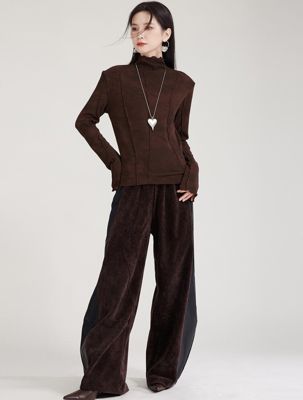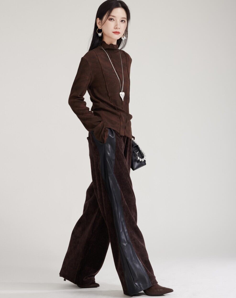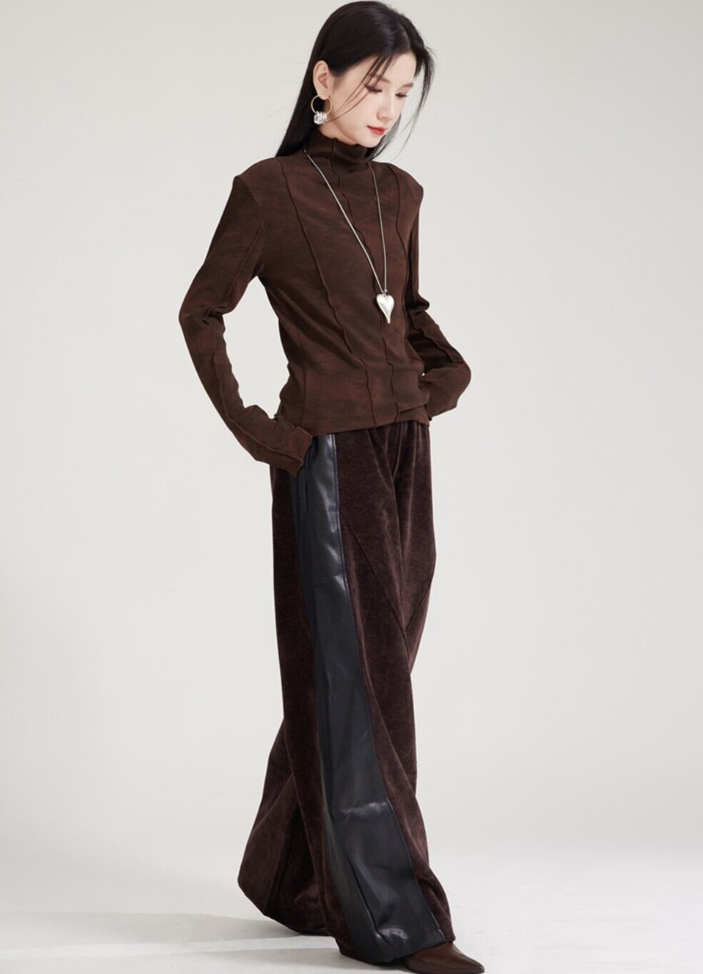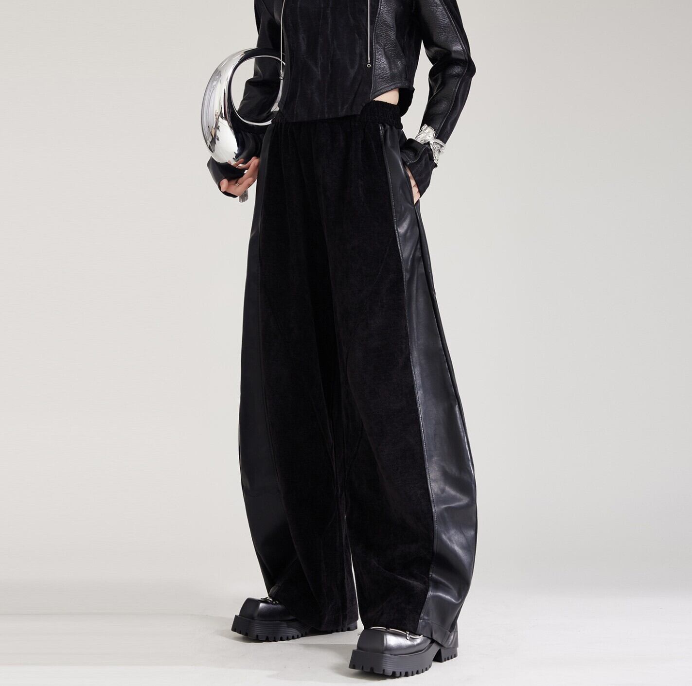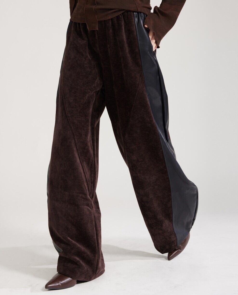 #NEIRA #ベロア #PUレザー #切替パンツ #ワイドパンツ #バナナシルエット #トラックパンツ #秋冬コーデ #韓国ファッション #モード #ユニセックス