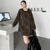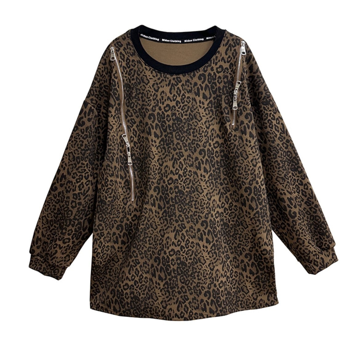 両肩サイドジップ アシンメトリーロングシャツ オーバーサイズスウェット|ミニワンピ丈|レオパード/ブラック|モード |NEIRA