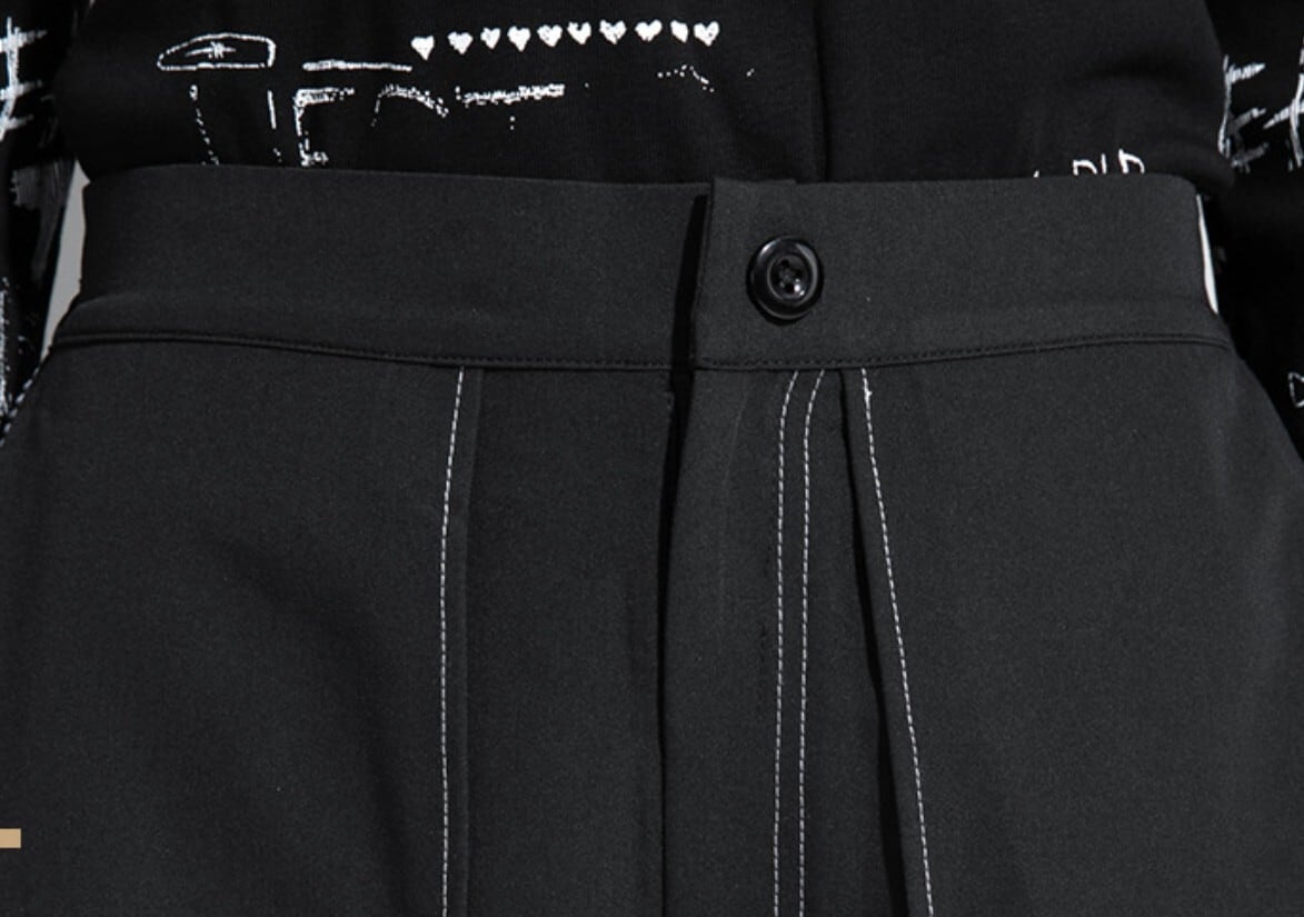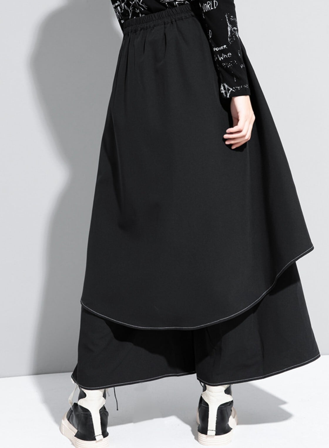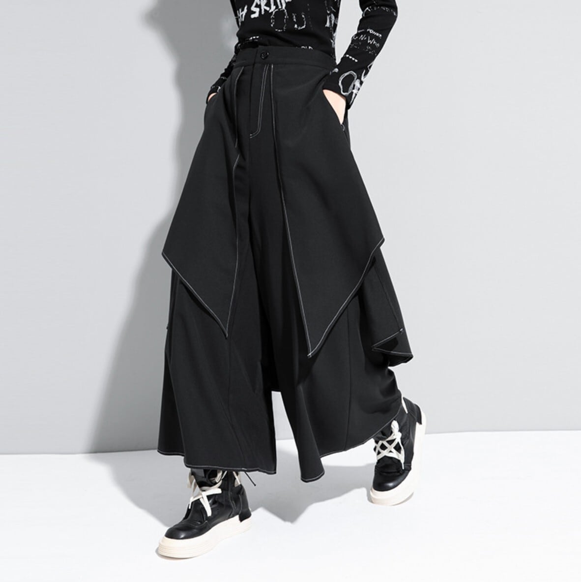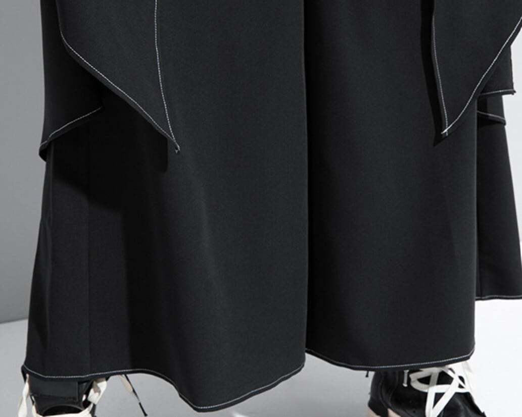 #袴風パンツ #ワイドパンツ #ユニセックス #モード系 #ストリート系 #韓国系ファッション #黒パンツ #白ステッチ #レイヤード風 #体型カバー #ハイウエスト #ウエストゴム #ポケット付き #ロング丈パンツ #モノトーンコーデ #秋コーデ #冬コーデ #春コーデ #個性派ファッション #大人カジュアル
