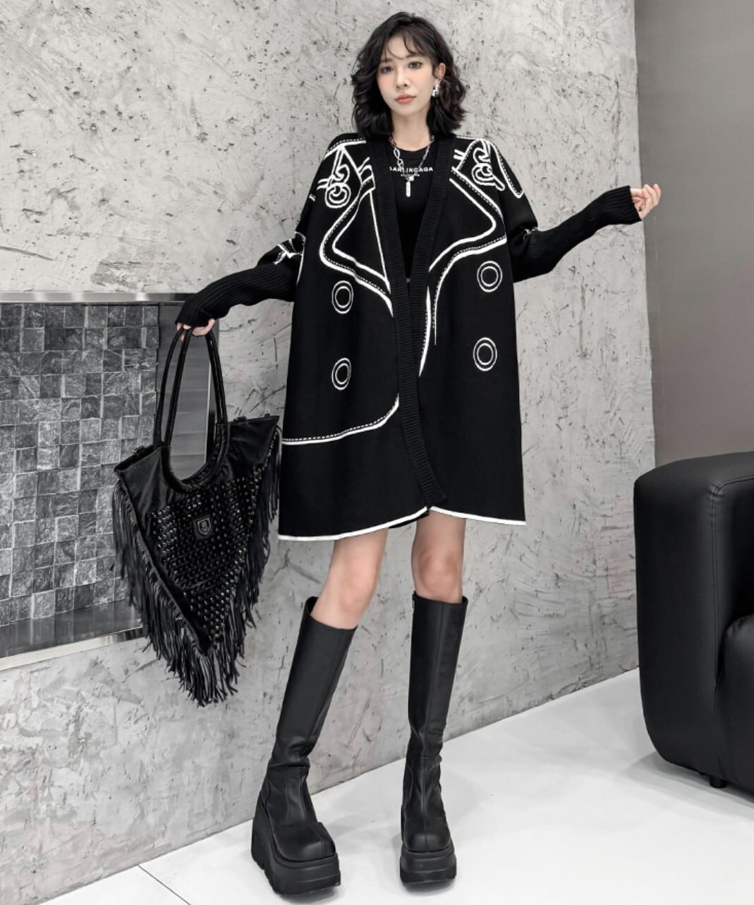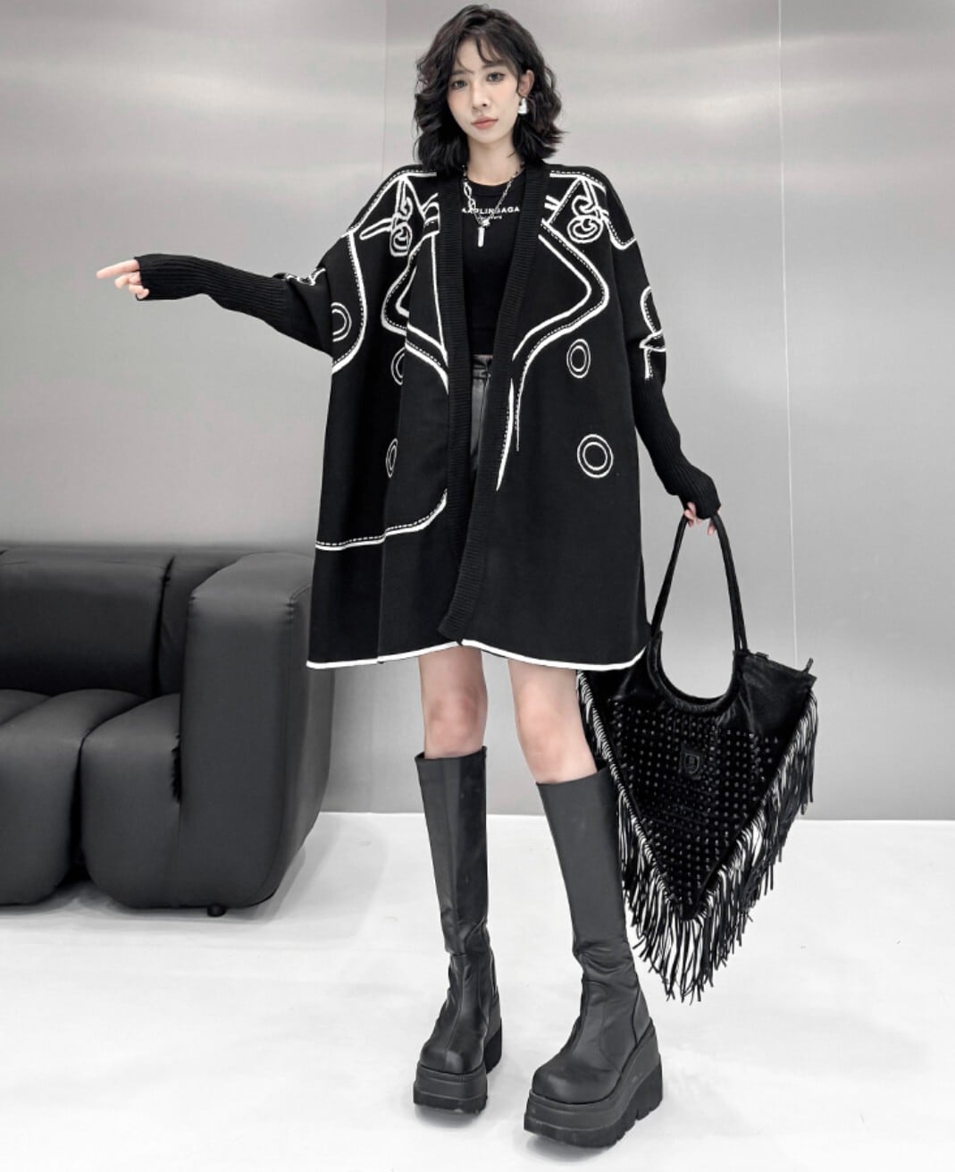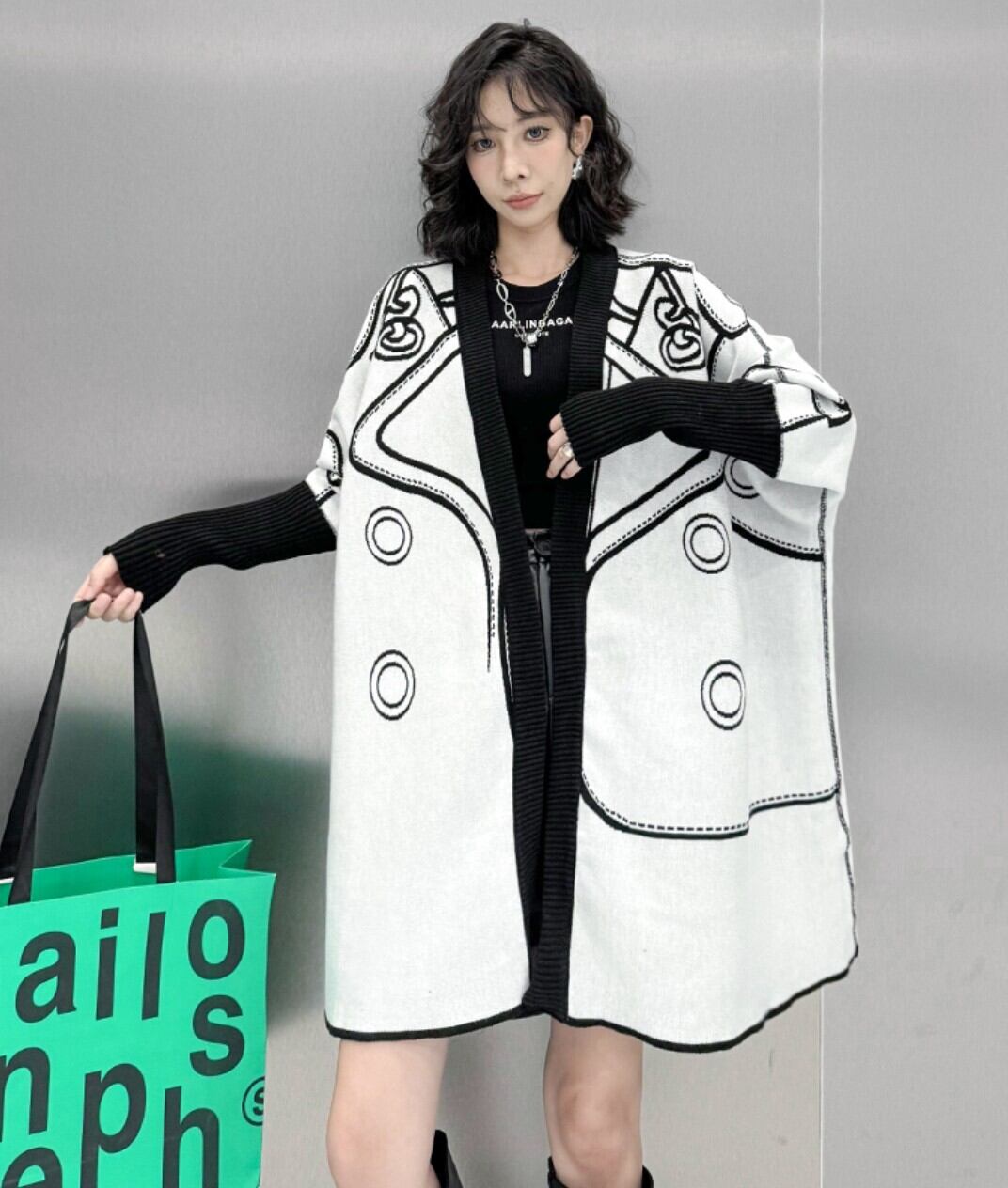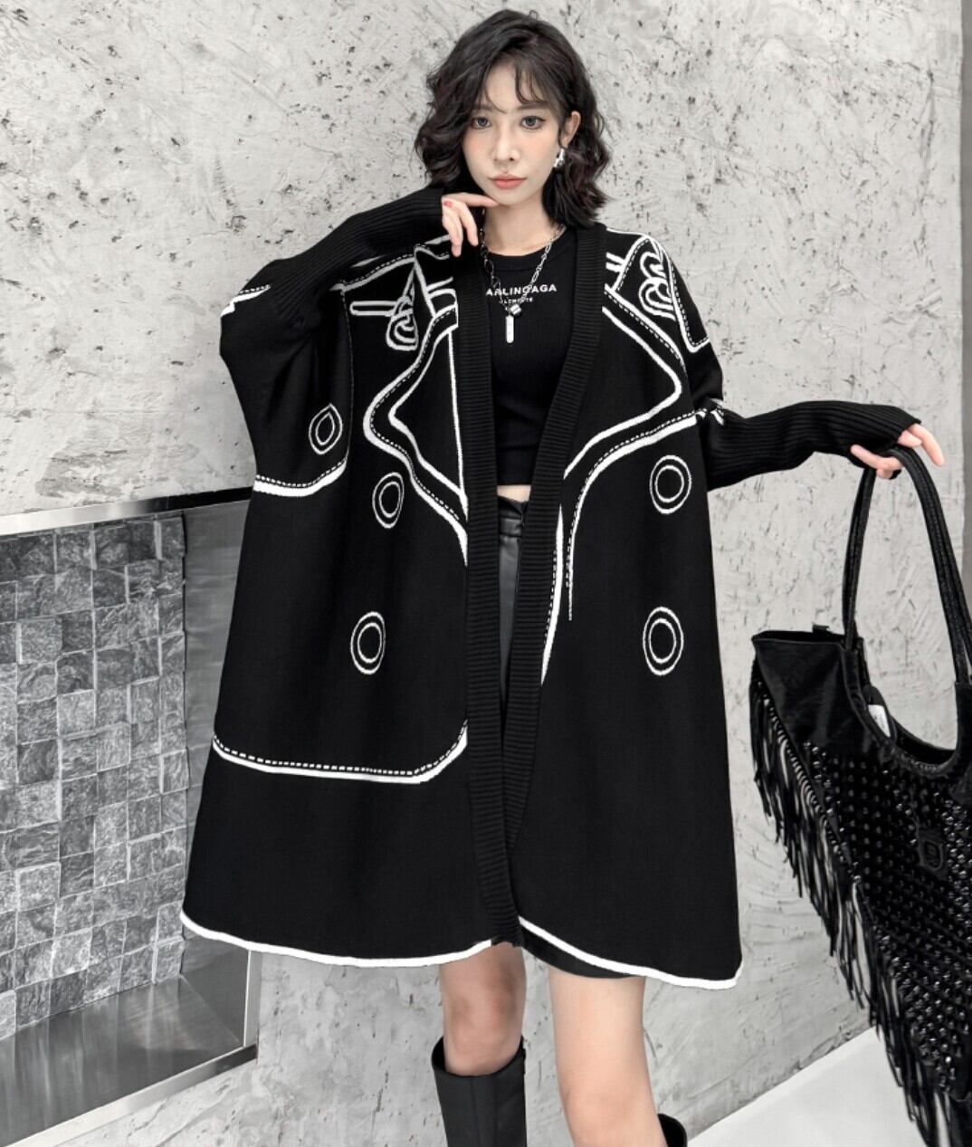 【リバーシブル】山本風 2WAYロングニットカーディガン/ジャカード配色・オーバーサイズ /レディース モード |NEIRA