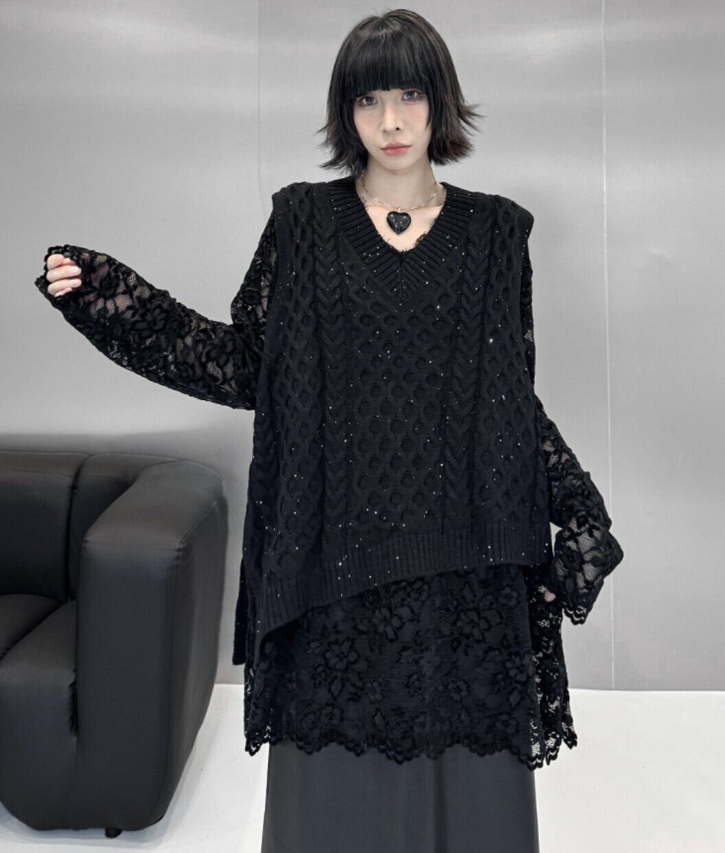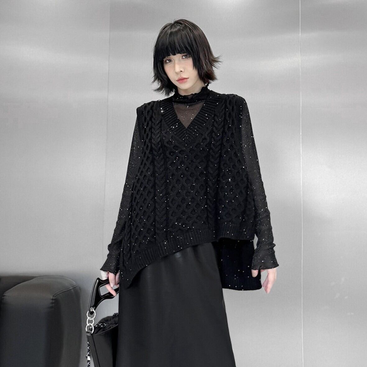 #ニットベスト #Vネック #スパンコール #ブラック #モード #レイヤード #オーバーサイズ #韓国系 #秋冬 #NEIRA